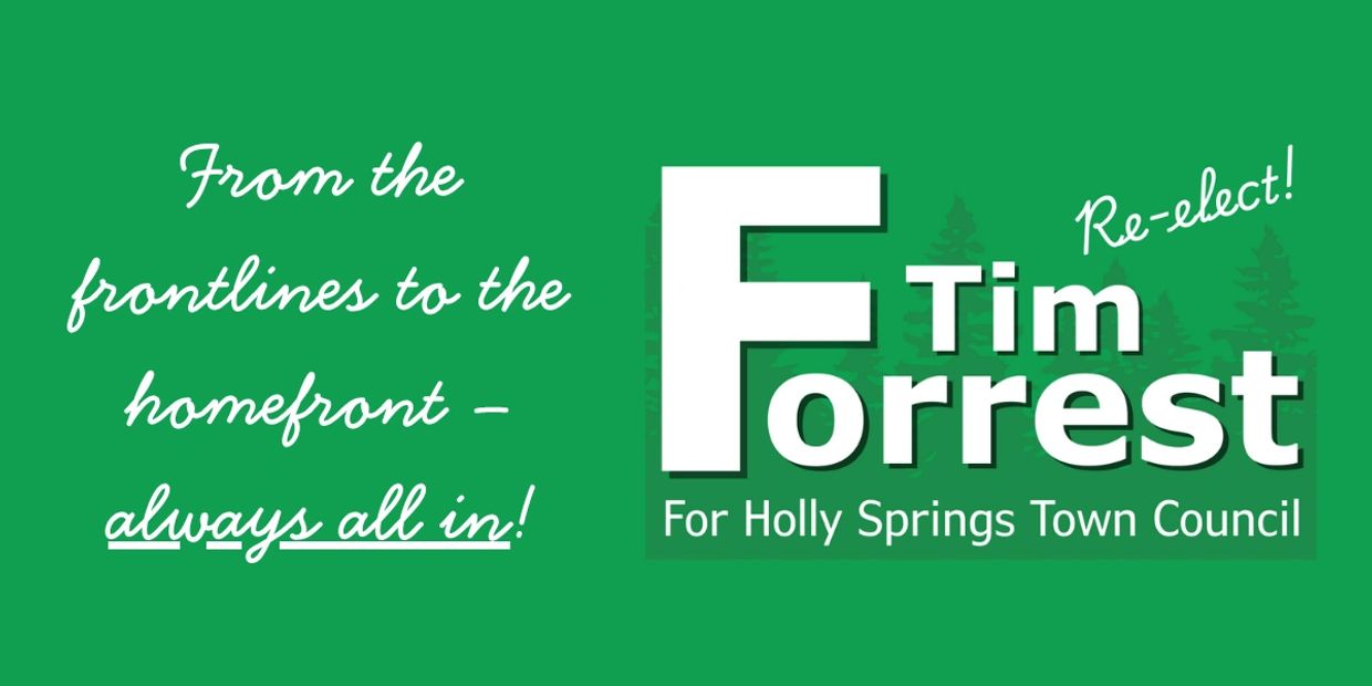 Tim Forrest is a retired U.S. Army Colonel and current Town Councilmember in Holly Springs, North Carolina. With over 30 years of leadership in military operations, strategic planning, and public service, he brings deep experience and critical skills to local government. Since being elected in 2021, Councilmember Forrest has championed infrastructure upgrades, downtown revitalization, greenway expansion, and public safety improvements, as well as helping pass a $100 million park bond and attracted billions of dollars in biotech investment and hundreds of jobs to the region.